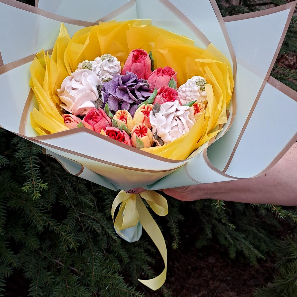 A beautiful bouquet of marshmallows. Made from natural products. Apple puree base.