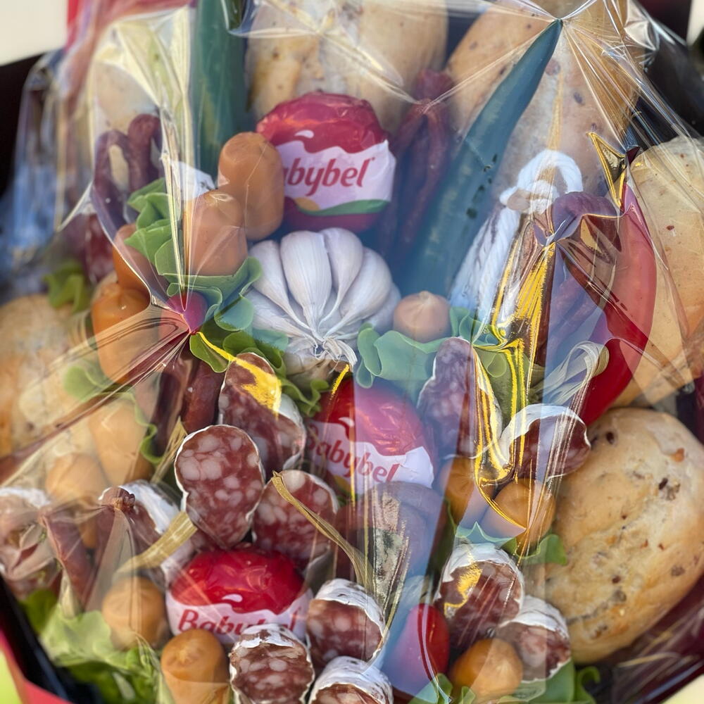 mitmevilja väike sai - 6 pcs chilli pippar - 5 pcs juust babybel - 3 pcs vorst fuet - 1 pcs suitsu juust - 12 pcs snäkkvorstikesed - 6 pcs küüslauk - 1 pcs leht salat - 1 pcs