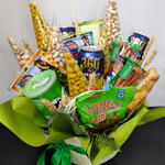 Box - 1 pcs Pigtail cheese - 1 pcs smoked sausages - 2 pcs soft drink - 3 pcs salted pistachios in a bag - 3 pcs spikelet decor - 5 pcs арахис соленый в глазури - 3 pcs рыба сушеная в упаковка - 2 pcs чипсы с сыром в упаковка - 1 pcs чипсы с луком в упаковка - 1 pcs сухарики с сыром и луком в упаковка - 1 pcs