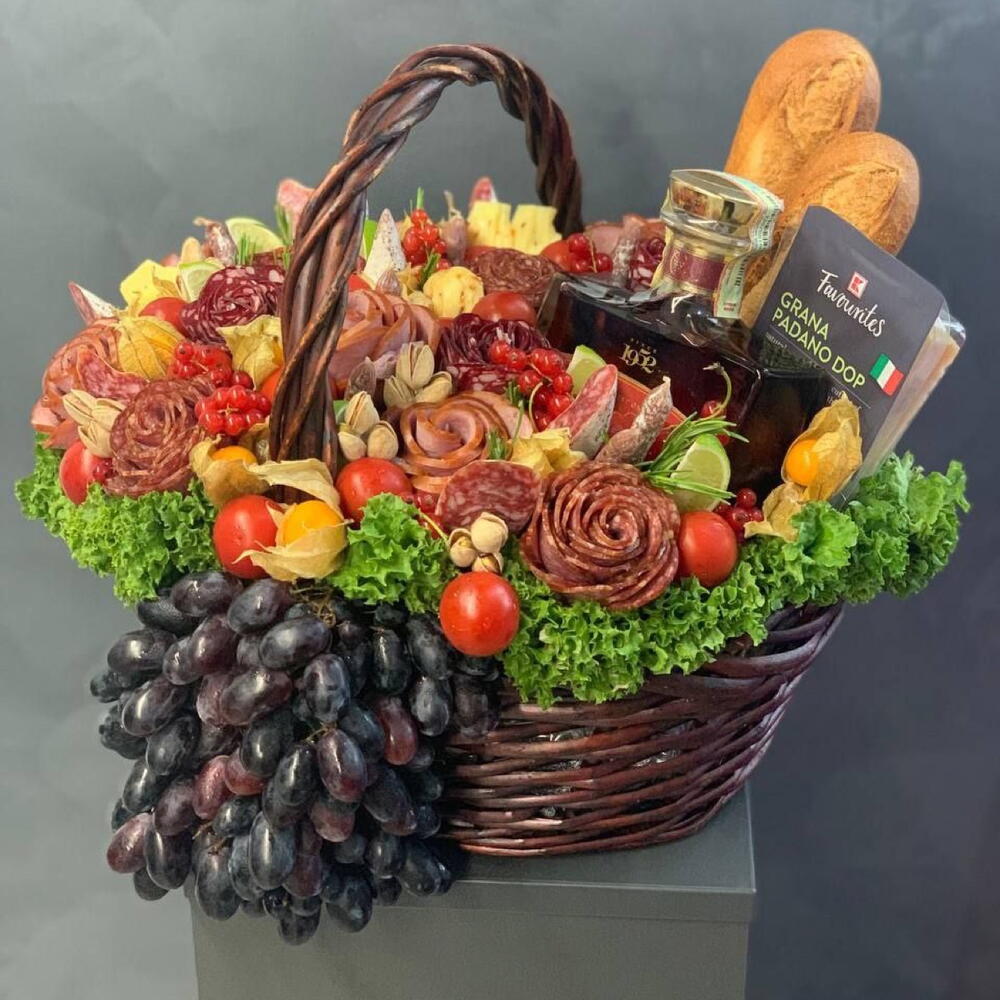 Grape - 2 pcs Lime - 2 pcs Physalis - 100 g Lettuce leaves - 2 pcs Rosemary - 1 pcs Baguette - 1 pcs Red currant - 150 g Pistachios - 1 pcs cherry tomatoes - 450 g fuet sausage - 150 g shopping cart xxl - 1 pcs parmesan cheese (Italy) - 1 pcs колбаски фуэт мини - 120 g сыр ниточный - 2 pcs коньяк коллекционный ( cricova) - 1 pcs колбаса московская - 600 g колбаса дрогобческая - 600 g