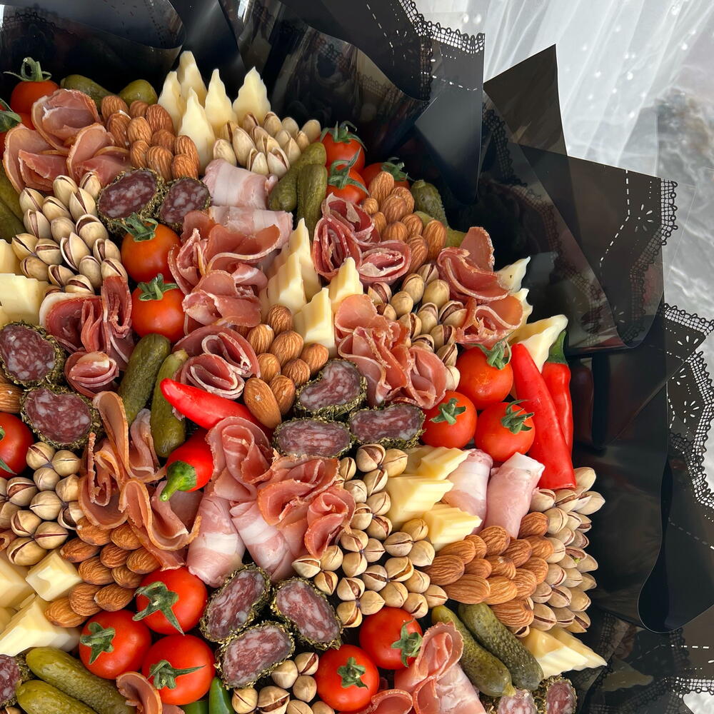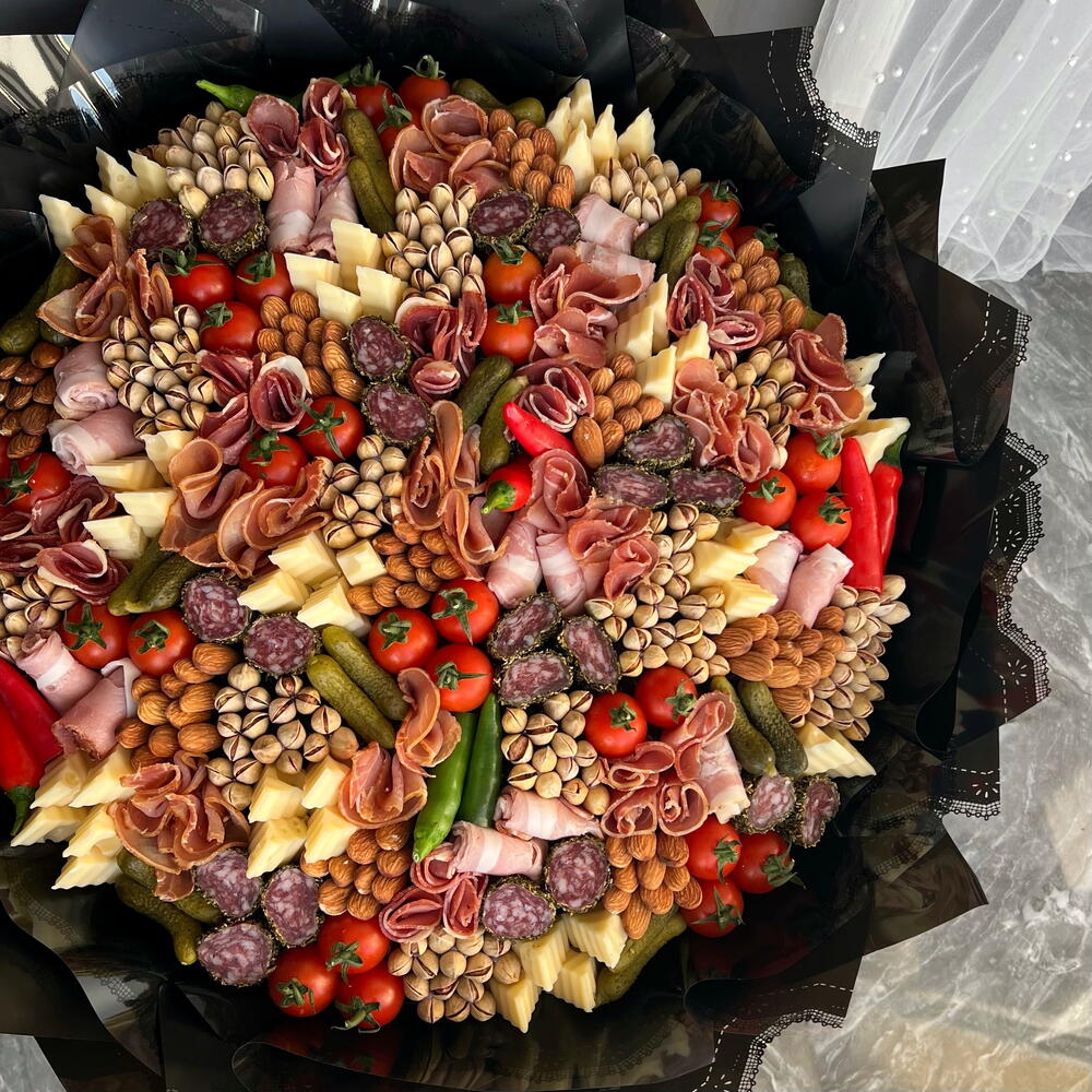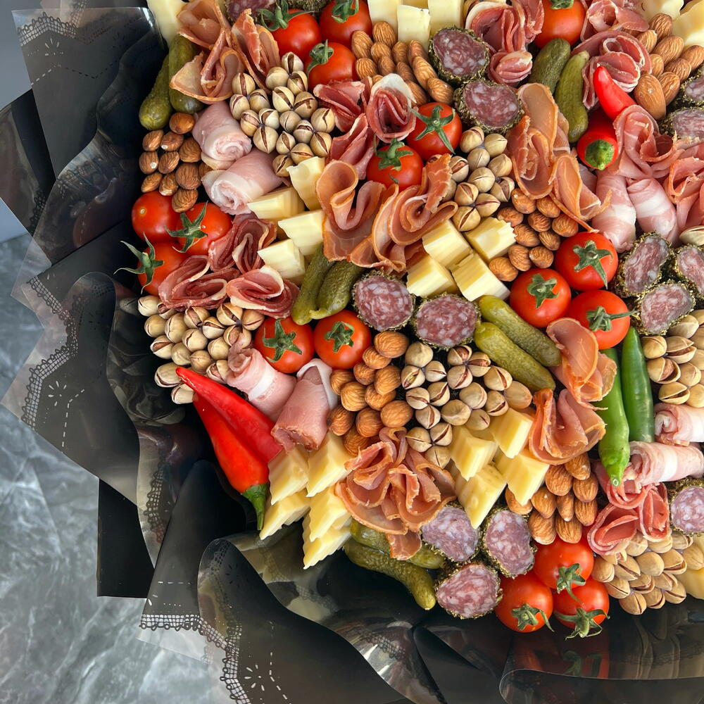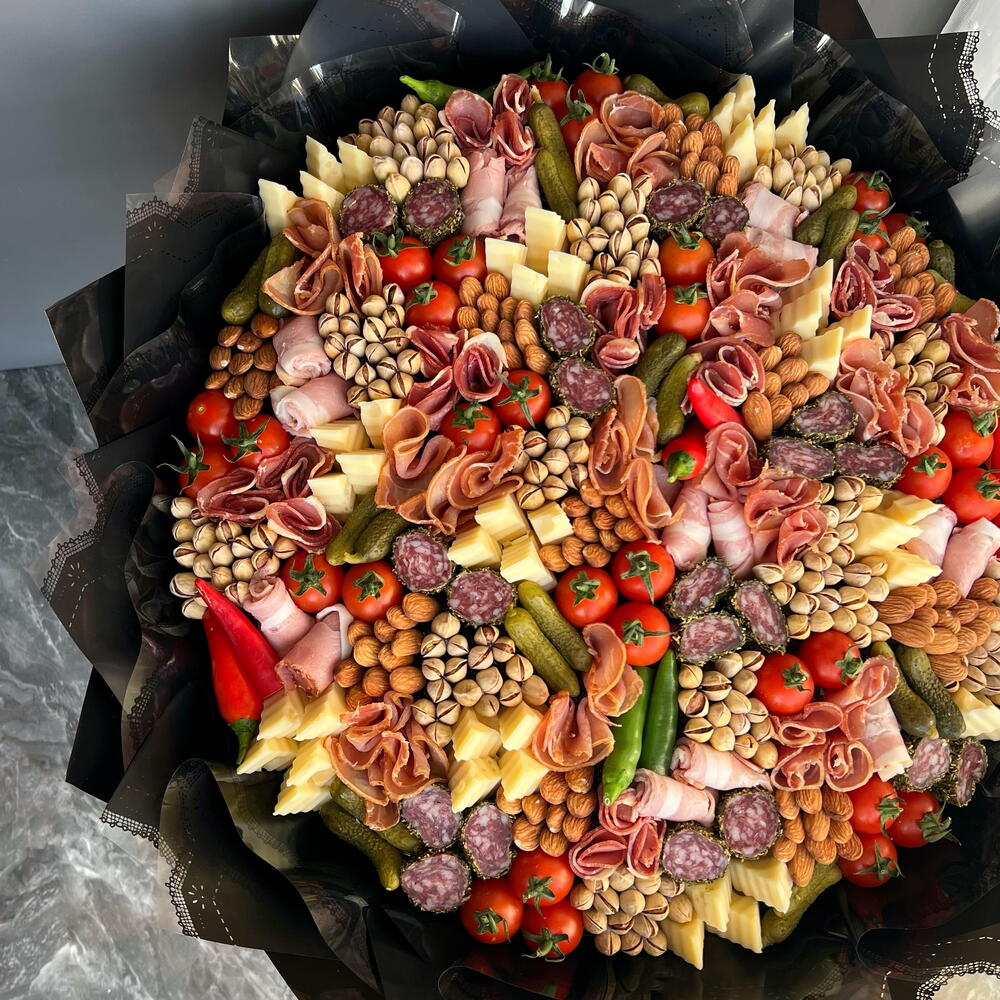 A gorgeous, huge bouquet of premium appetizers! A bouquet every mans dream. Ill tell you a secret, women love it too!