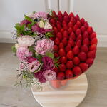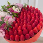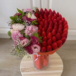 This is not just a bouquet - it is a wow effect at first sight. Juicy selected strawberries in perfect tandem with fresh flowers - freshness, style and creativity in every detail. Made in an unusual design, with a designer approach that distinguishes it from all competitors. **The tenderness of the petals, the temptation of the berries** - our bouquet evokes admiration and a desire to immediately give (or keep for yourself!). Ideal for romantic surprises, non-standard confessions or stylish holidays. **It is the only one like it - and only we have it.** While others offer ordinary bouquets, we give emotions and impressions. ---