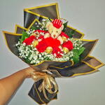 gipsofila blanca - 3 pcs peluche - 1 pcs ferreiro rocher - 6 pcs rosas vermelha - 6 pcs