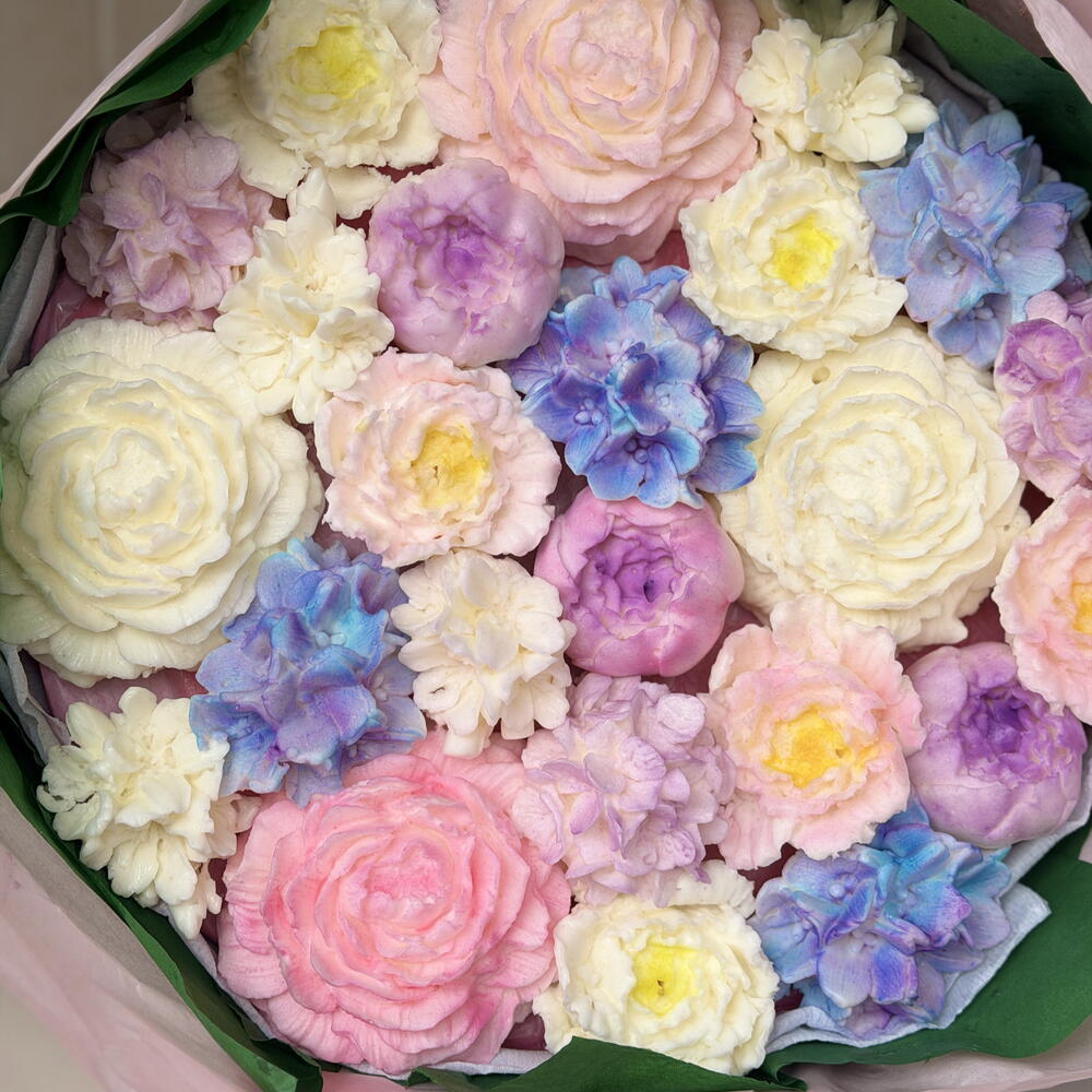 This bouquet is a little masterpiece: light and airy, like a delicate vanilla souffle. The flowers blend harmoniously, evoking the soft, sweet essence of “bird’s milk” in natural cream and white tones. Every detail is thoughtfully crafted, with the bouquet’s shape reminiscent of an elegant spire — refined, gentle, and sophisticated. A perfect gift for anyone who appreciates elegance and a touch of sweetness in every detail. Ingredients: sugar butter agar-agar sweetened condensed milk albumin (pasteurized egg white) edible food coloring.
