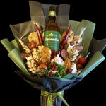 cherry - 5 pcs garlic - 2 pcs pistacio - 50 g salami - 180 g bread - 1 pcs fuet - 180 g chilli - 3 pcs peanut - 50 g cheese balls - 50 g kabanos sausages - 70 g beer 0.5 - 1 pcs garlic bread - 1 pcs cheese chechil - 1 pcs pistachio corn - 3 pcs