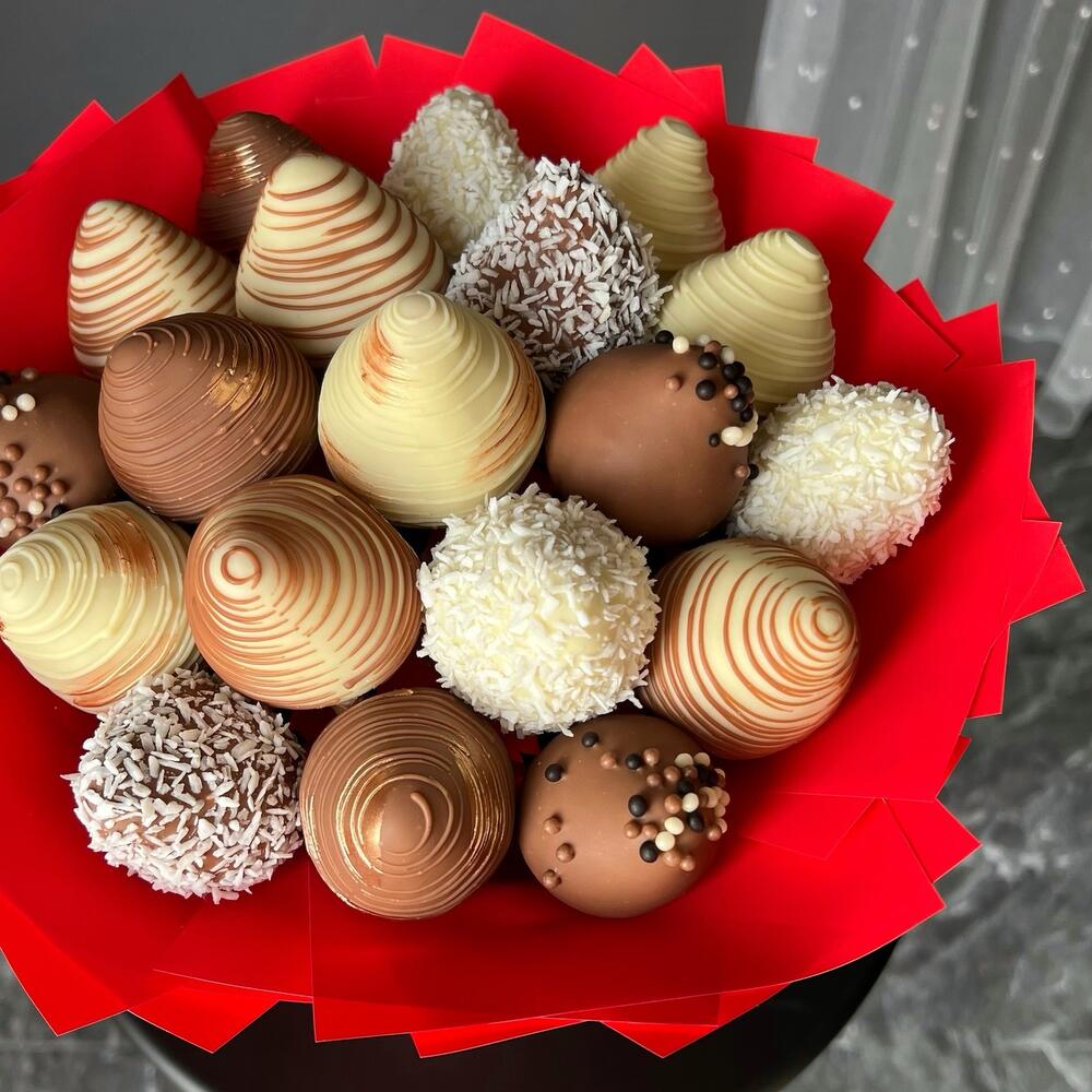 Strawberry bouquet in Belgian white and milk chocolate 19 pieces