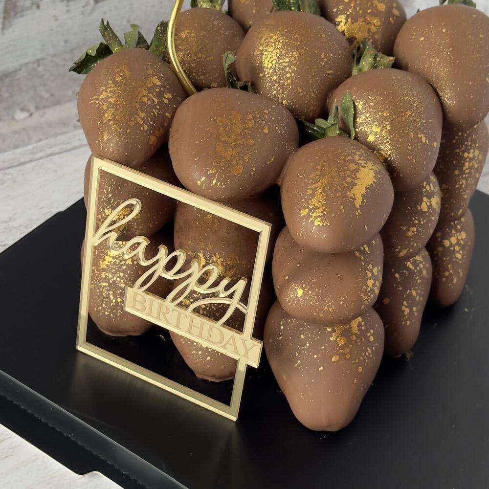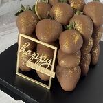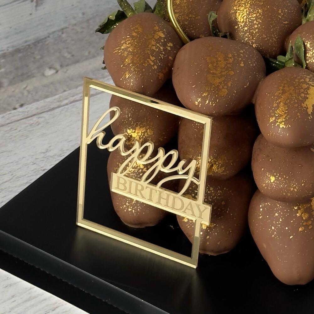 Fresas bañadas en chocolate, topper „Happy Birthday”, vela