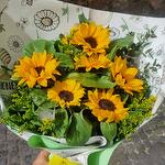 6 girasoli con solidago giallo fogliame e verde decorativo
