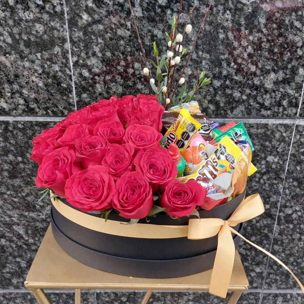 Encantador detalle presentado en una hermosa caja de cartón, elaborado con rosas frescas y una deliciosa selección de dulces. Dulce Amor 💘 combina romanticismo, ternura y sabor, siendo el regalo perfecto para sorprender en cumpleaños, aniversarios o cualquier ocasión especial con un obsequio lleno de amor y dulzura.