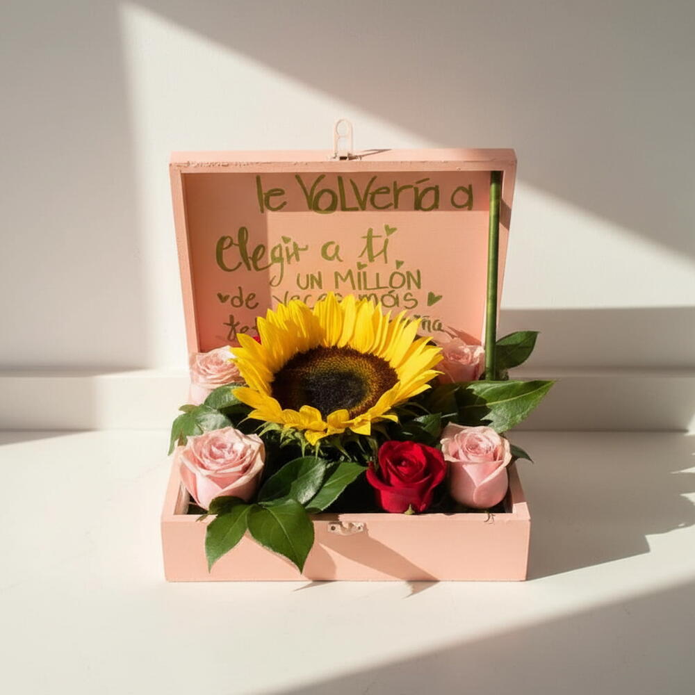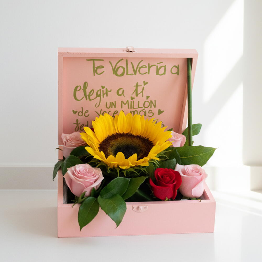 Caja Floral Te Volveria a Elegir con Girasol y Rosas – Regalo Romantico