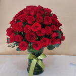Impresionante arreglo floral presentado en un elegante florero de vidrio, compuesto por 72 tallos de rosas frescas. Inmenso Amor es una expresión majestuosa de romanticismo, pasión y elegancia, ideal para sorprender en aniversarios, propuestas o cualquier ocasión especial con un detalle inolvidable lleno de belleza y sentimientos profundos.