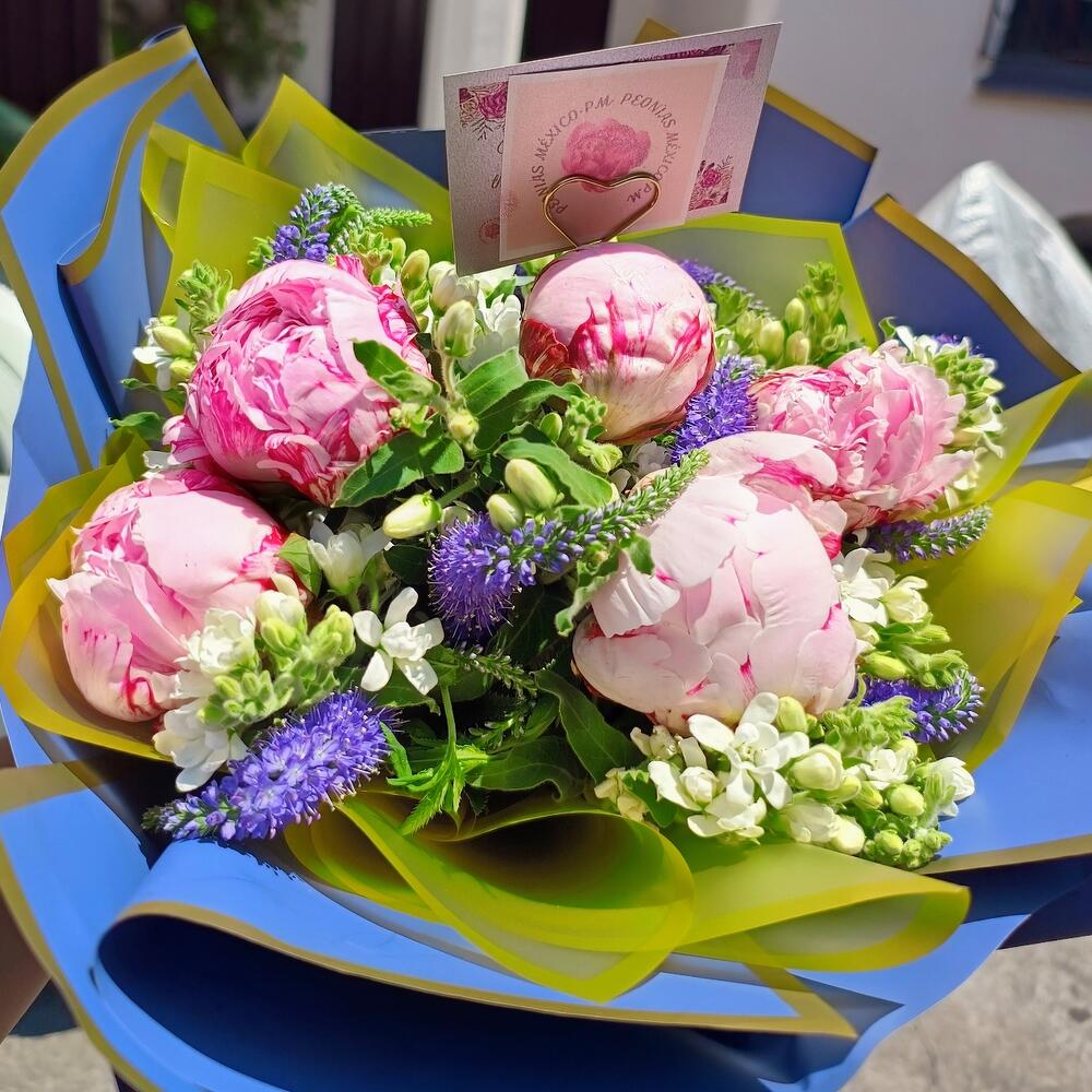 Un arreglo con unas peonias muy mal elegidas No quede nada satisfecho