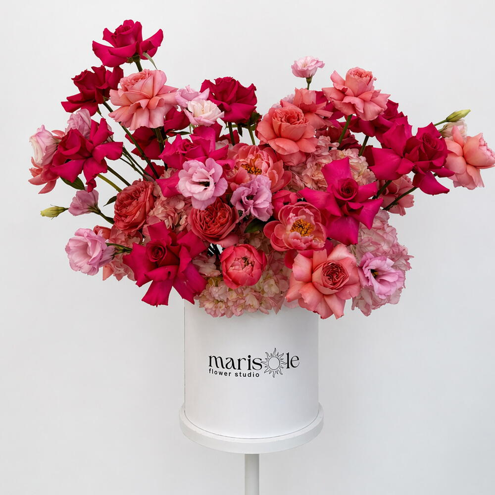 The Miami Blush Box is a soft and romantic floral arrangement designed with French Roses, Peonies, Garden Roses, Lisianthus, and Hydrangeas. Its rich blend of pink tones creates a fresh, luxurious look that feels both joyful and sophisticated. Perfect for birthdays, anniversaries, thank-you gifts, or simply making someone smile, this flower box is made to leave a lasting impression. Hand-arranged with care, Miami Blush Box is a beautiful choice for fast flower delivery in Miami and Aventura.