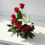florero - 1 ud. lirio - 1 ud. rosa rojas - 8 ud.