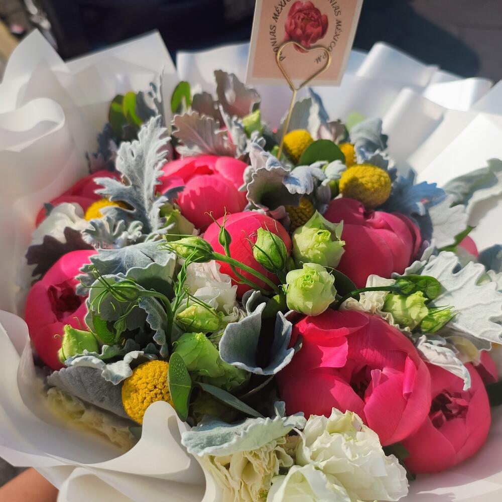 Un arreglo con unas peonias muy mal elegidas No quede nada satisfecho