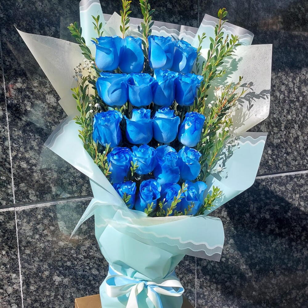 Elegante ramo compuesto por 18 tallos de rosas pintadas, cuidadosamente elaboradas para crear un efecto único y llamativo. Príncipe Azul es un detalle especial y moderno, perfecto para sorprender en ocasiones únicas, transmitiendo originalidad, romanticismo y un toque artístico lleno de encanto.