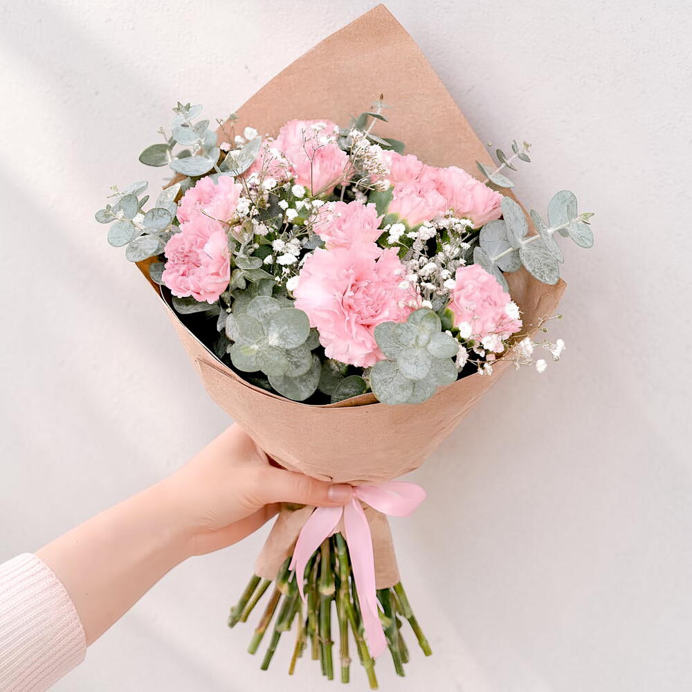 Un detalle lleno de ternura y significado 💕 Nuestro Ramo Claveles Para Ti combina la suavidad de los claveles rosados con la frescura del eucalipto y la delicadeza de la gypsophila creando un arreglo elegante y atemporal. Perfecto para sorprender, enamorar o simplemente recordarle a alguien lo especial que es 🌷✨