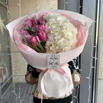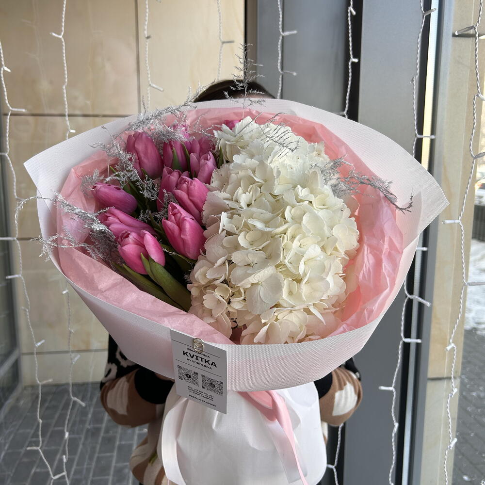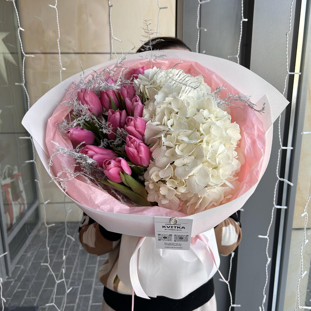 asparagus - 2 ud. hortensja - 2 ud. tulipanes - 11 ud. papier dekoracyjny - 1 ud. akwabox - 1 ud.