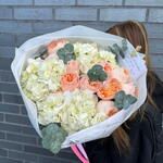 Eucalyptus - 5 ud. hydrangeas white - 4 ud. peonías y rosas Juliet - 10 ud.