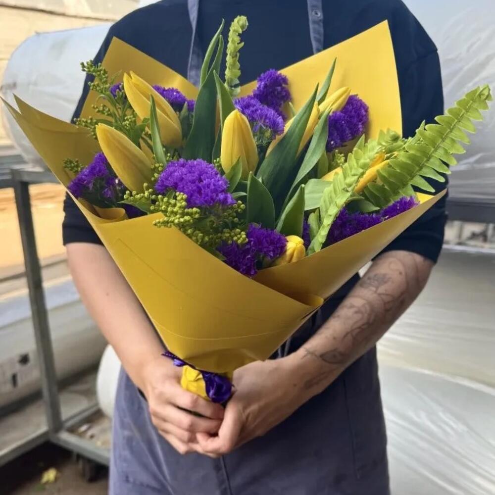 Estática - 7 ud. Solidago - 5 ud. tulipán amarillo - 7 ud.