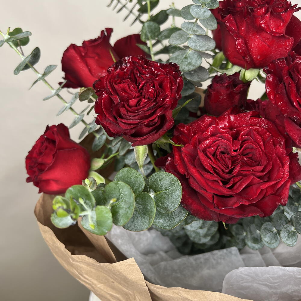 Eucalyptus - 10 ud. Spray rose - 5 ud. rosa de jardín premium - 12 ud.