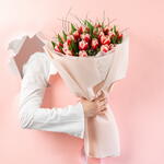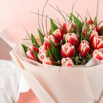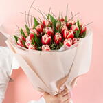Tulips - 25 ud. paper - 6 ud. ribbon satin - 1 ud. green - 3 ud.