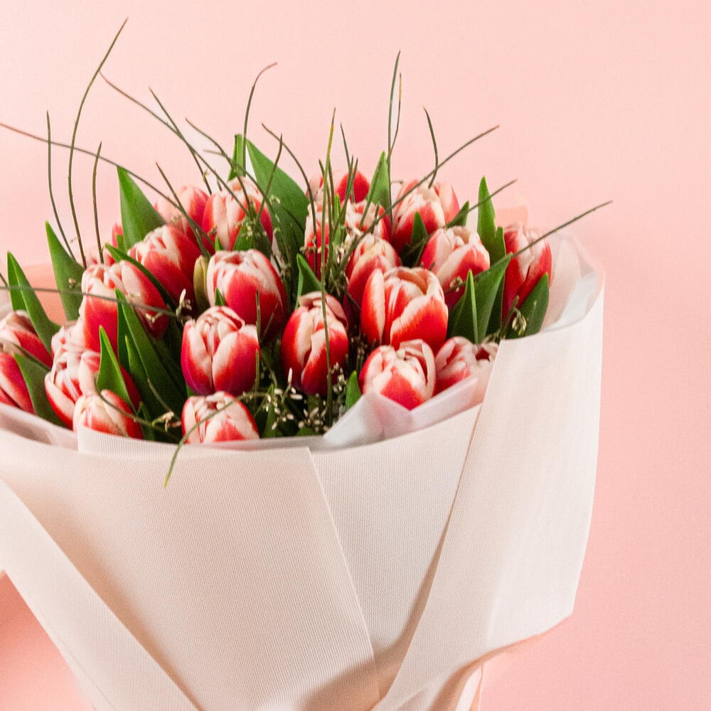 Tulips - 25 ud. paper - 6 ud. ribbon satin - 1 ud. green - 3 ud.