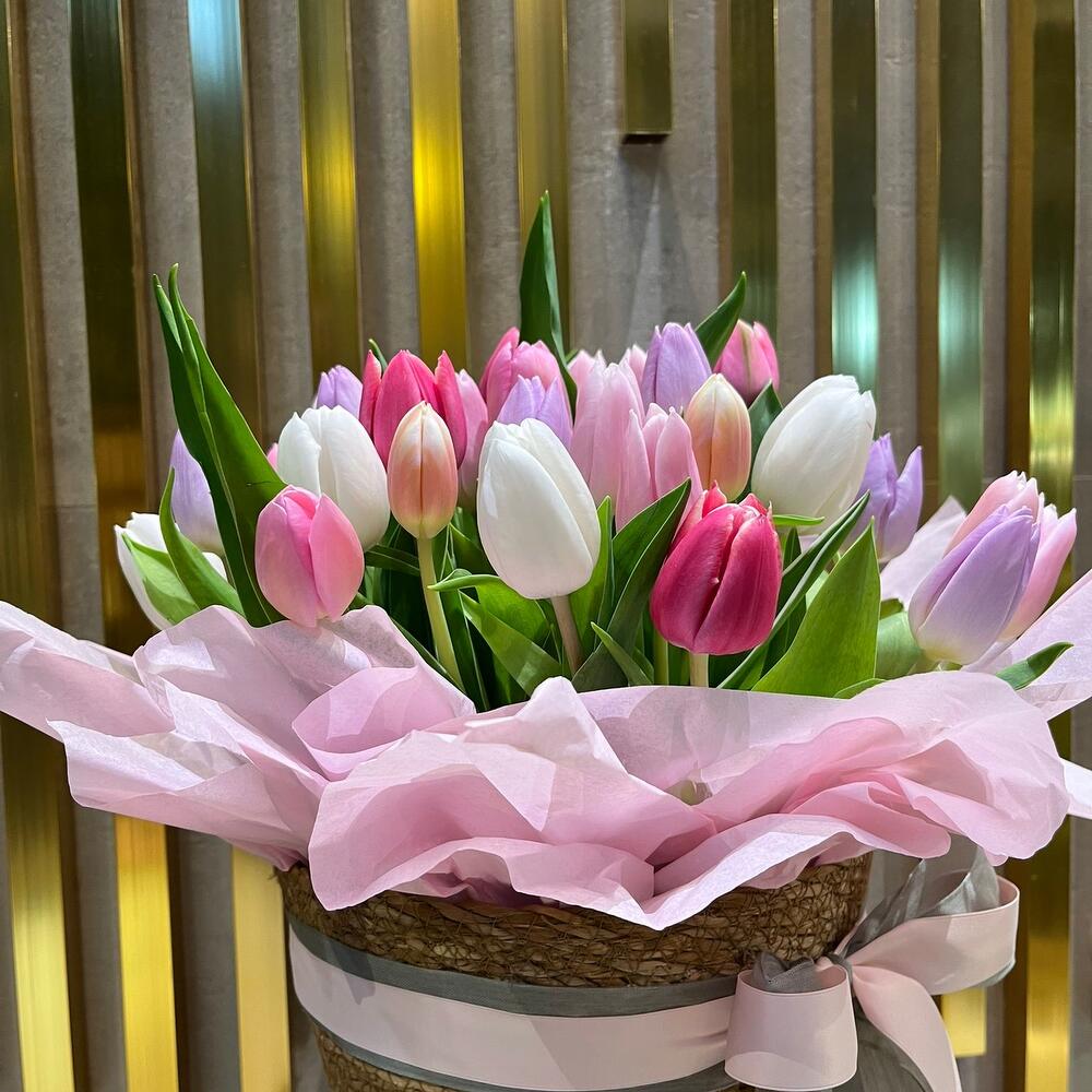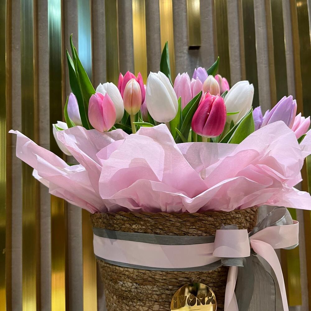 La cinta - 1 ud. Tulips - 35 ud. Basket - 1 ud. paper - 2 ud.
