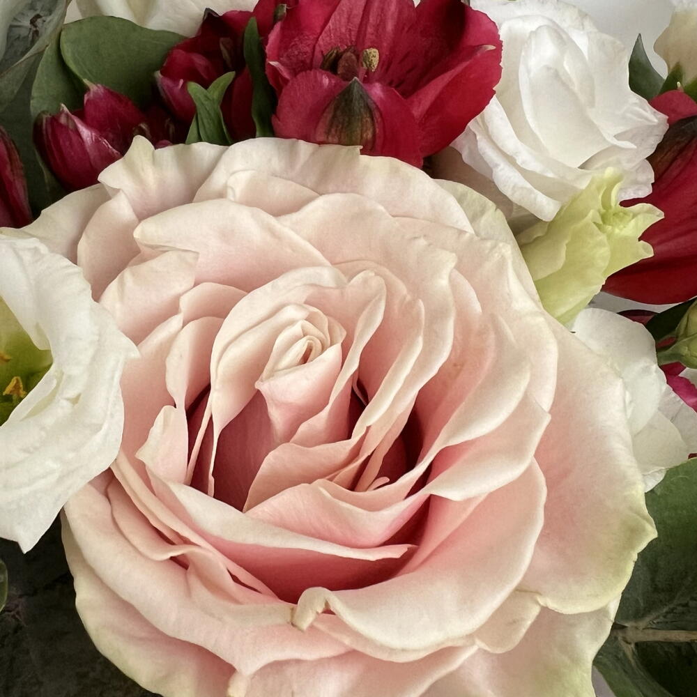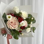 Eucalyptus - 5 ud. Alstroemeria - 2 ud. lizantes - 3 ud. roses - 3 ud.