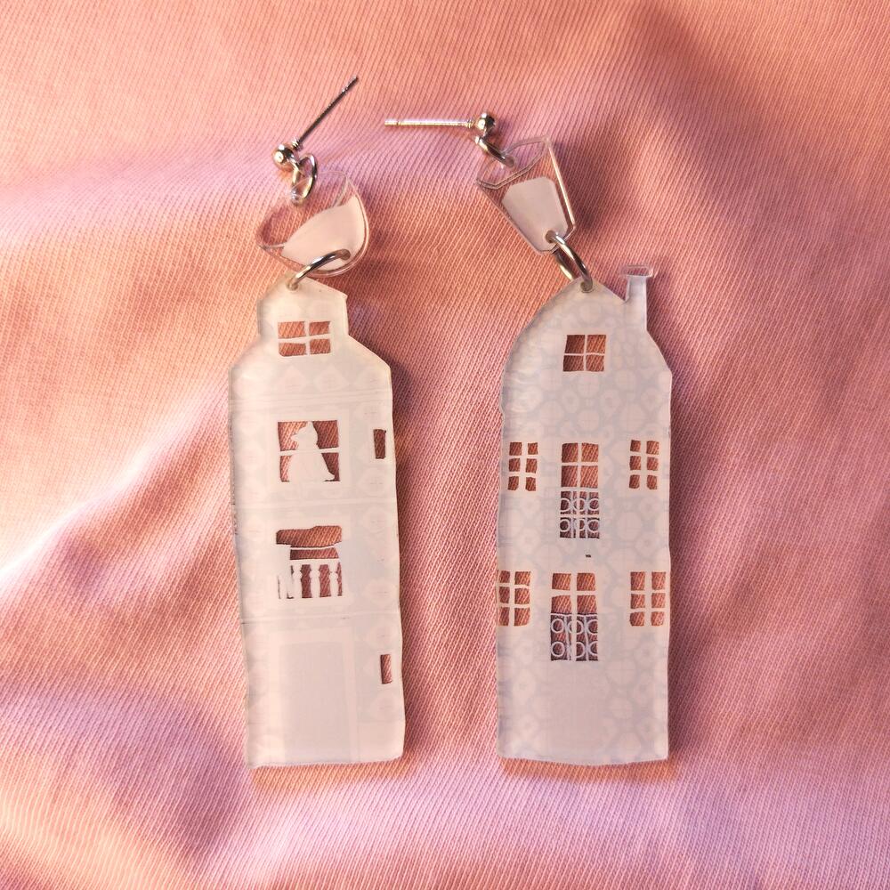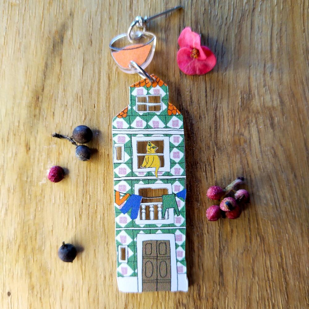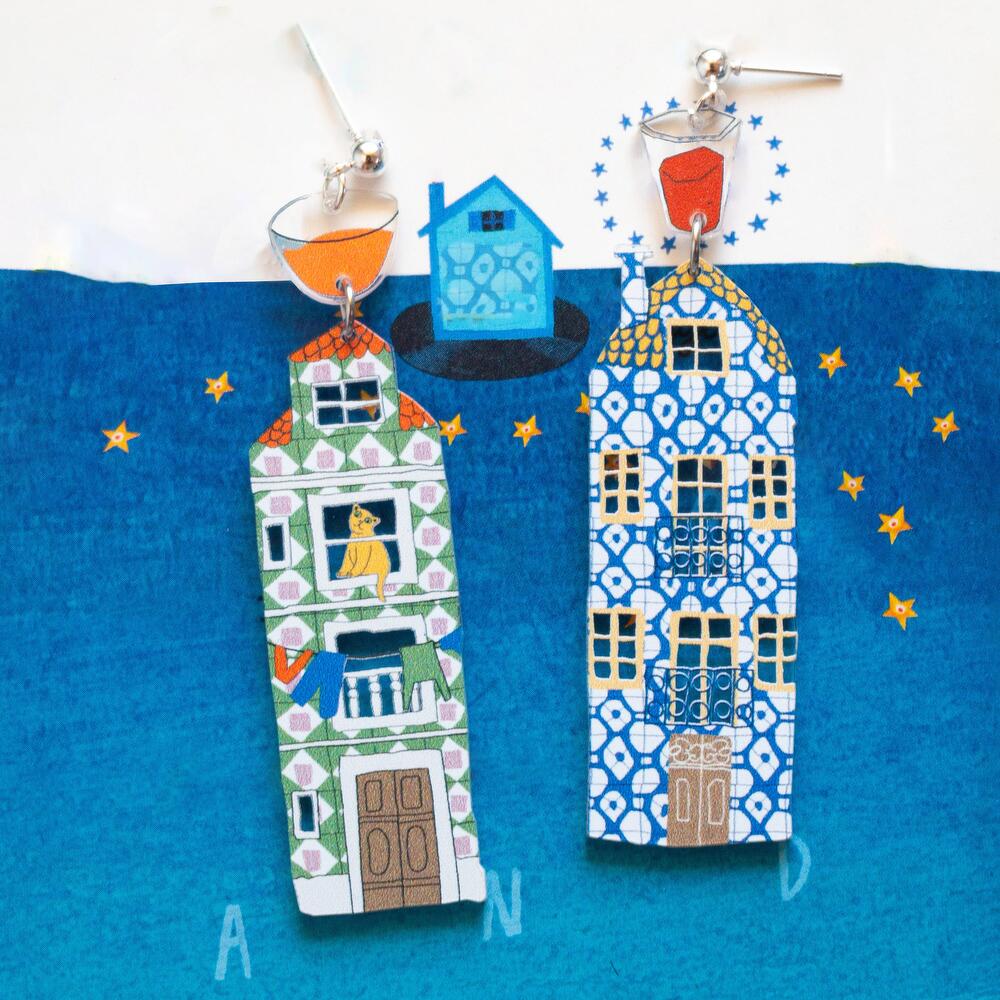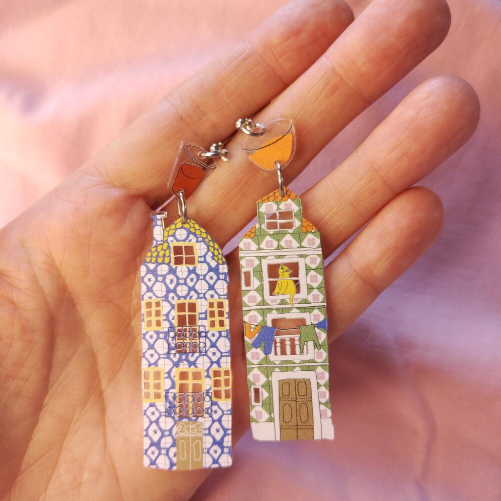 Earrings in shape of Lisbon buildings with studs. Made with using waterproof print.