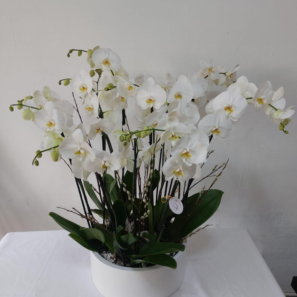 Elegante macetón de orquídea compuesto por 10 tallos de orquídeas frescas, cuidadosamente seleccionadas para ofrecer belleza, durabilidad y sofisticación. Macetón de Orquídea es el detalle perfecto para decorar espacios con estilo o sorprender en ocasiones especiales, transmitiendo armonía, elegancia y distinción natural.