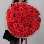 Этот ошеломительный монобукет объединяет в себе сто одну розу, каждая из которых подобрана с особым вниманием. Каждый цветок переливается яркими оттенками, символизируя любовь, страсть и уважение. Этот букет станет незабываемым подарком, который надолго останется в памяти.