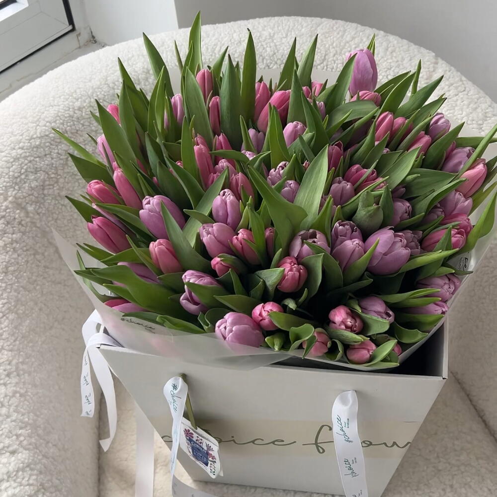 pink tulips - 51 pcs lilac tulips - 50 pcs