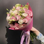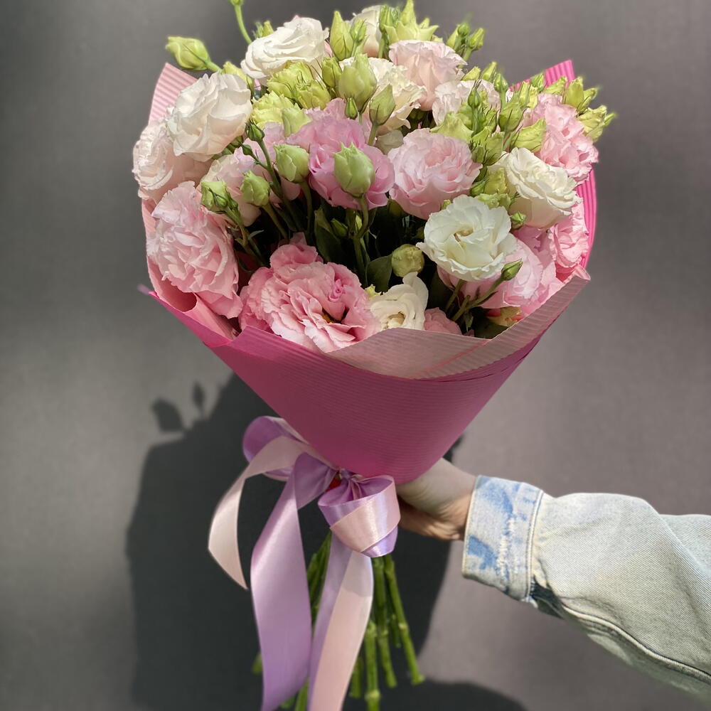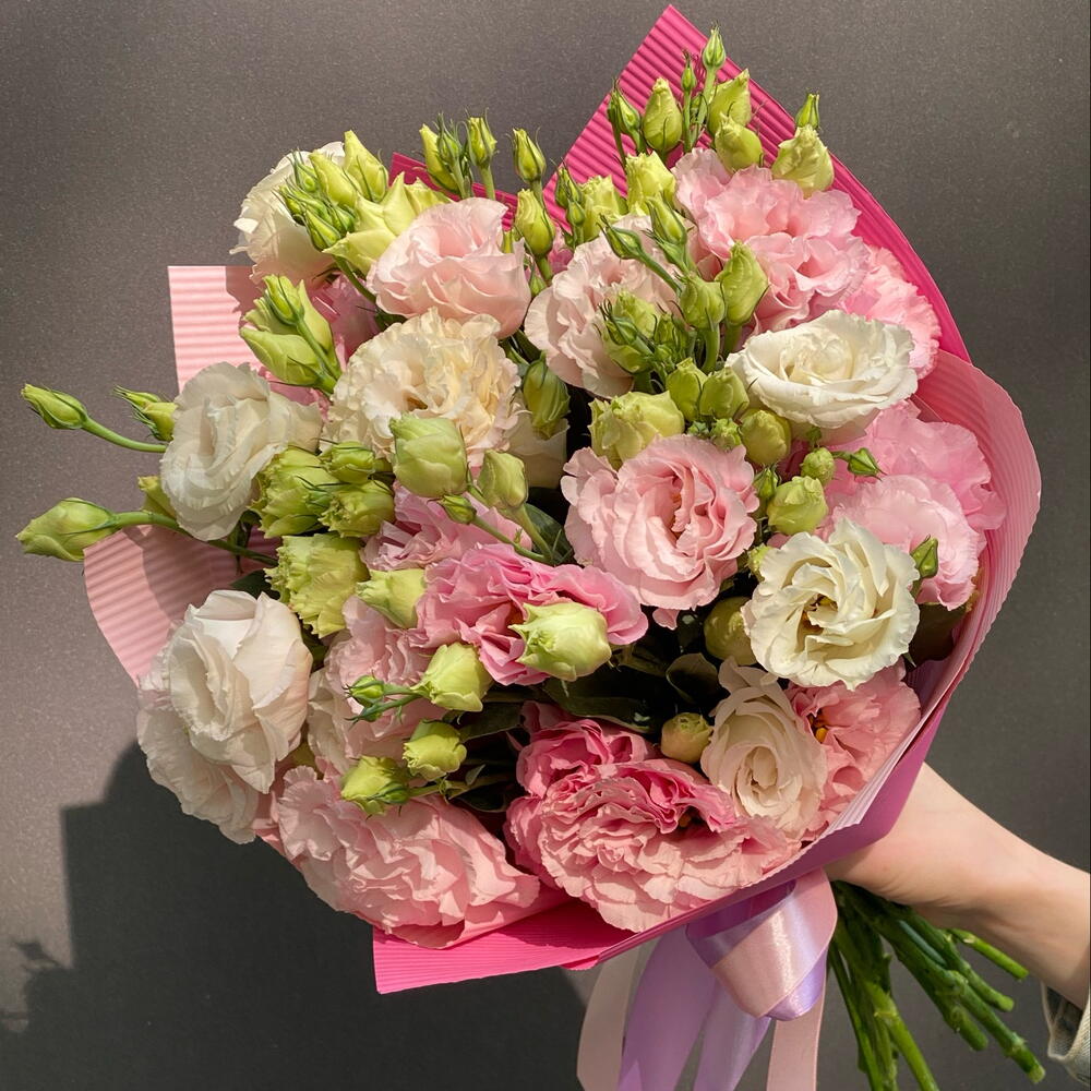 A wonderful composition for fans of mono bouquets in the form of a fluffy, pink lisianthus.