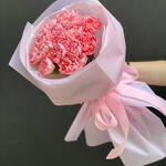 Delicate bouquet of 15 pink carnations A charming bouquet composed of 15 pink carnations – flowers that symbolize tenderness, care, and sincere feelings. Its light fragrance and fluffy form give the composition a romantic character. The bouquet has been carefully packed in elegant packaging in delicate shades, which highlights the natural beauty of the flowers. Perfect for special occasions, expressing feelings, or as a nice gesture without a specific reason.