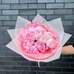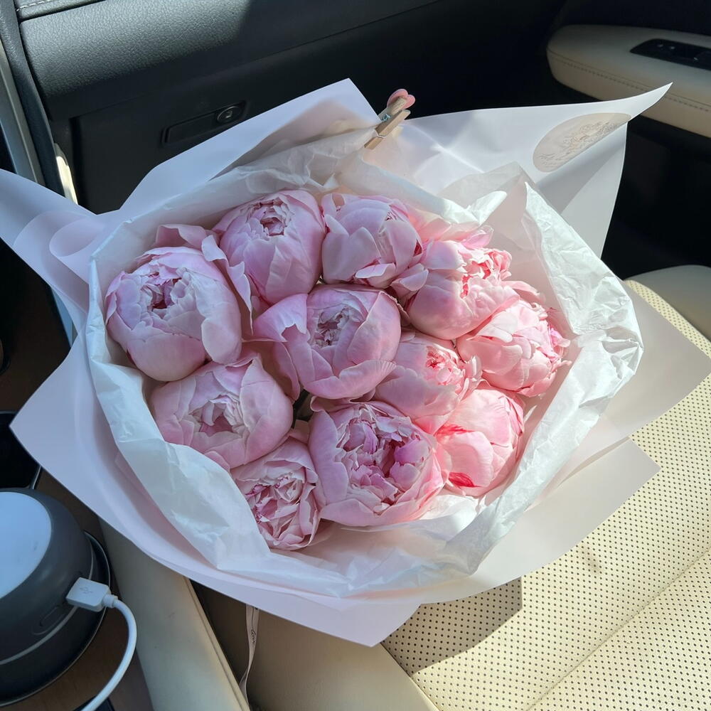 Peonies may be smaller or bigger depending of the season. The photo just rolls the ratio of colors between each other and the design of the arrangement The magical combination of pink peonies and eucalyptus will conquer any heart. Just look at this stunning combo of stunning large peonies and eucalyptus, which we simply and neatly emphasized with wrapping paper and colored ribbon. Add to favorite to not lose! HOW TO CARE OF FLOWERS? Do not remove the wrapping paper from the bouquet, so then flowers will live longer Change the cold water in a vase every day Keep the vase clean Cut the stem of each flower every two days Keep the bouquet out of a direct sun, drafts and heaters Add the flower food 2-3 days after you’ve bought your bouquet (We add the flower food to every bouquet)