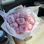 Букет красивый получился. Доставили немного позже назначенного времени, не критично для нас это было. Фото отчет сделали быстро. Доставка считаю дорогая, плюс большие розы не первой свежести были.