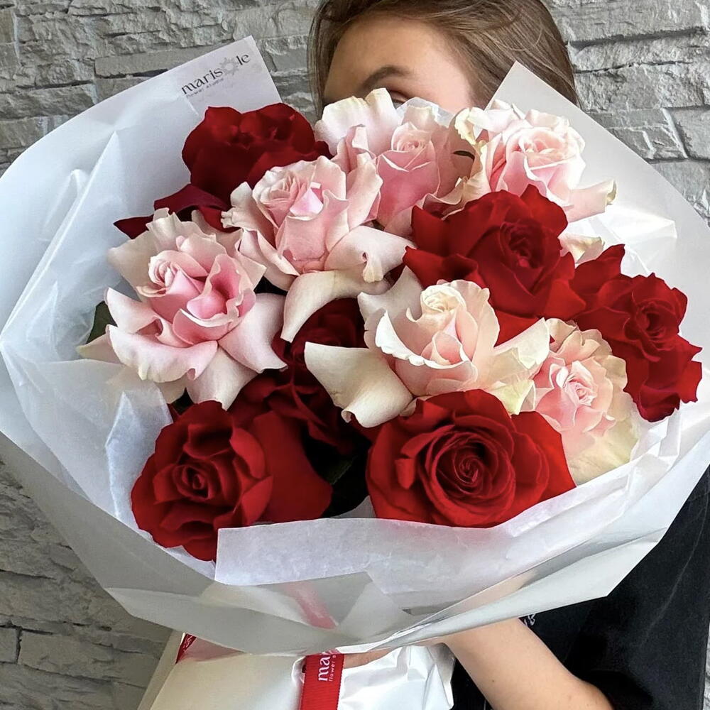 Dive into romance with our stunning French Roses Mix—a gorgeous blend of pink and red blooms that commands attention with their impressive size and lush, voluminous petals! 🌹 Watch your loved ones light up when they receive this show-stopping bouquet that says youre absolutely worth it. ✨ The actual bouquet may slightly vary from the photo. Colors, shades, and the natural shape of the flowers can differ, but the style and quality always stay the same.