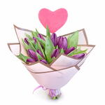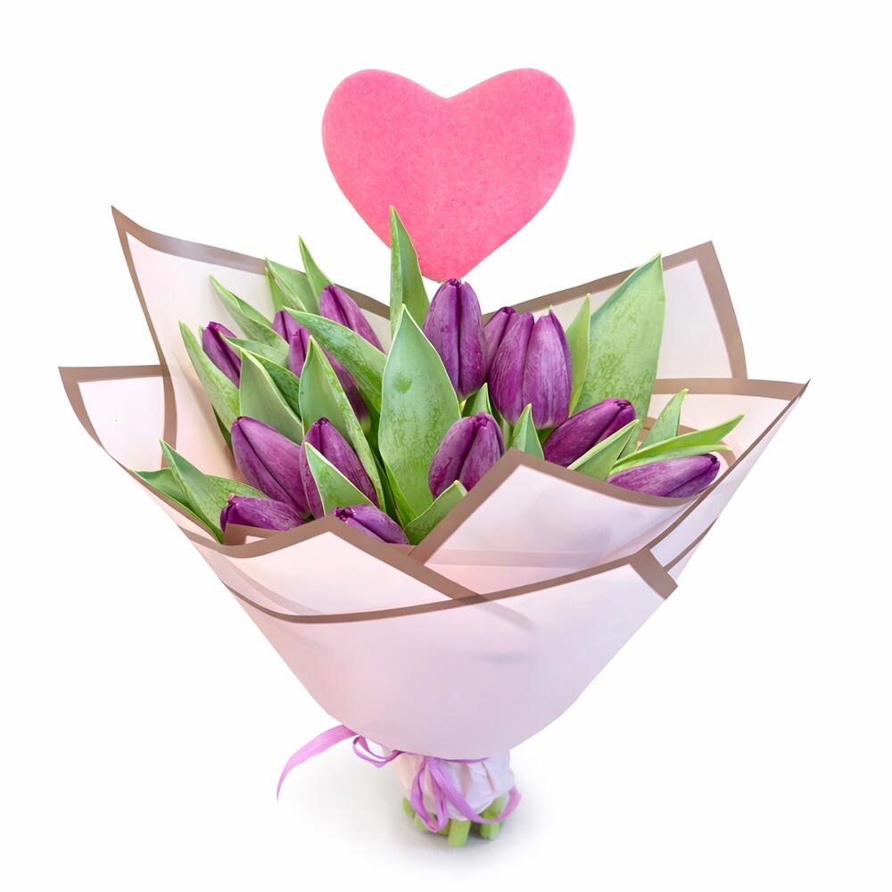 wrapping paper - 2 pcs tulips purple - 15 pcs stick heart - 1 pcs