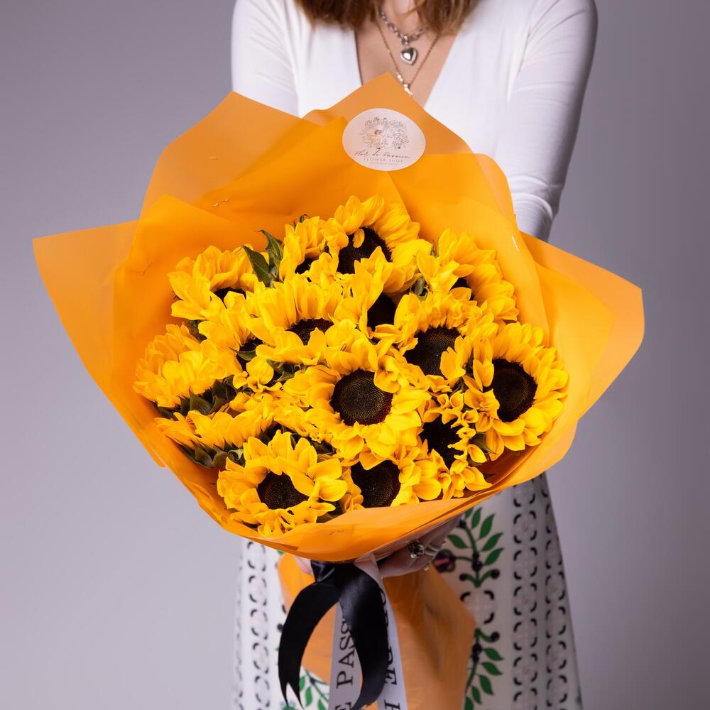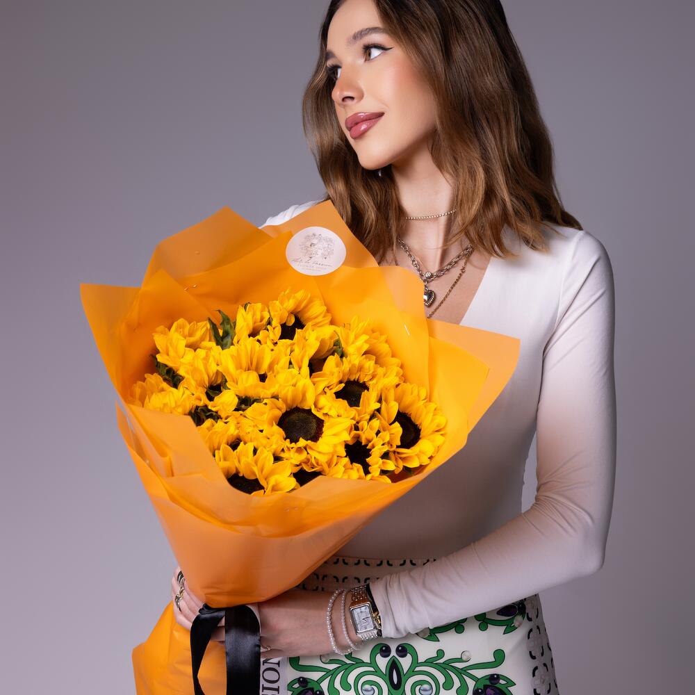 Sunflowers are one of the brightest ano largest representatives of the flower world. They symbolize warmth, summer, joy and good mood. Bouquets with them are distinguished by the incredible energy given to the flowers by the Sun itself. They give such flowers as a sign of gratitude, admiration, wishes of happiness. Sunflowers are universal. They are presented to friends, parents, colleagues, loved ones. It is believed that the bouquet with them will be appreciated by impressionable, unusual, creative natures. Since all flowers are individual, just like people, the bouquet may be slightly different. But we try to repeat each bouquet as much as possible, as on the photo in the product card. Add to favorite to not lose!
