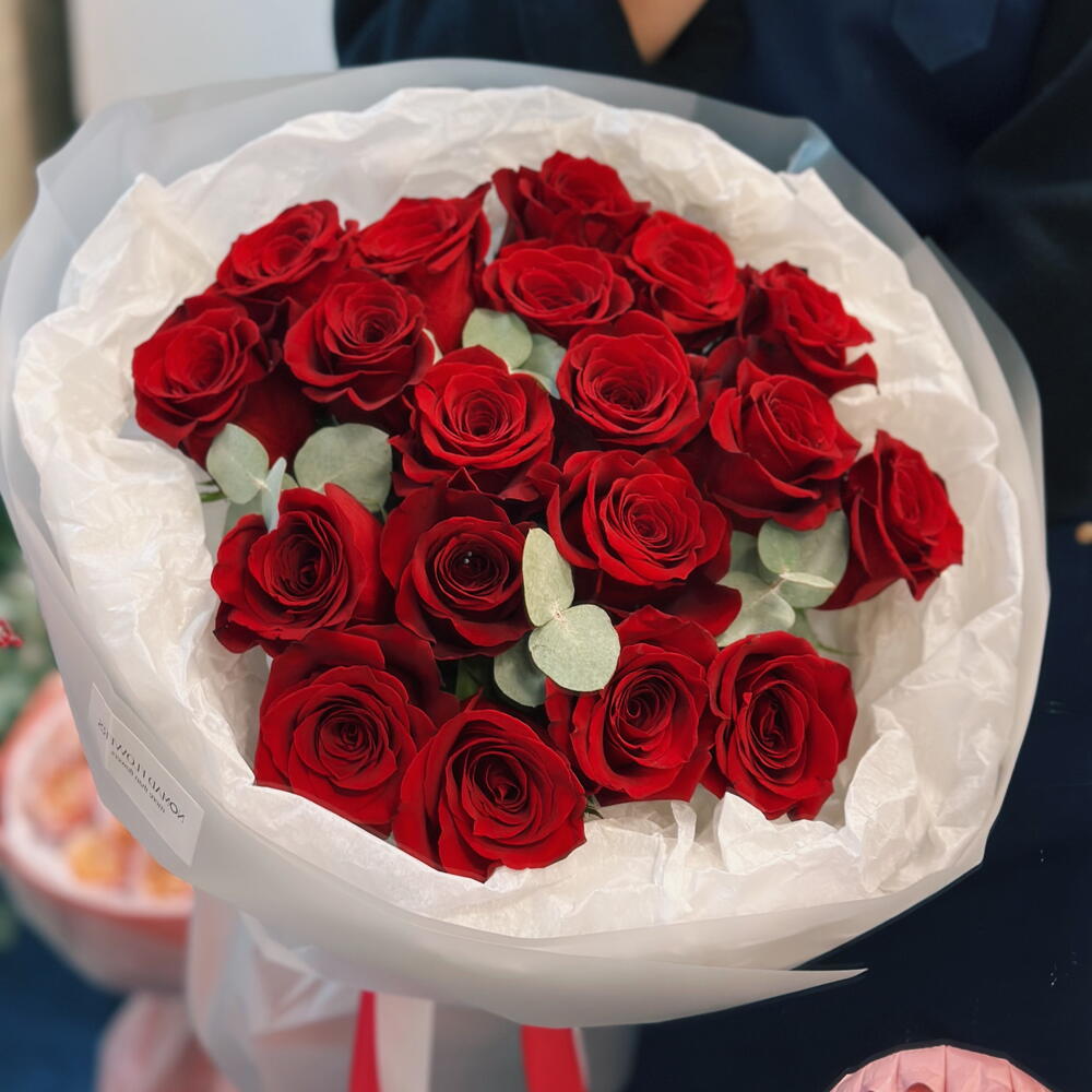 Red rose - 19 pcs Eucalyptus - 4 pcs