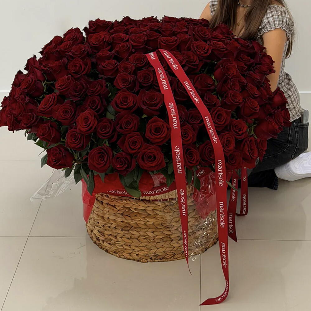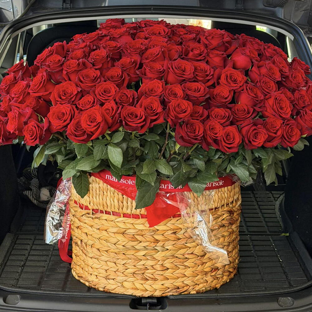 200 Roses in Basket - Fresh Premium Longstem Roses