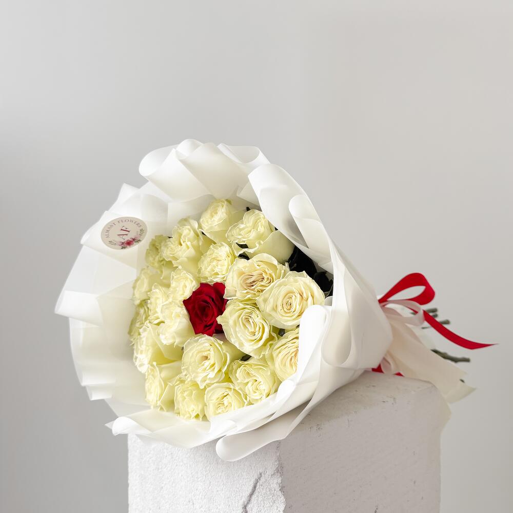 Red rose - 1 pcs White rose - 20 pcs