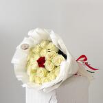 21 white roses with red rose
