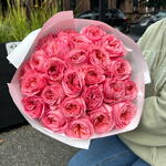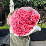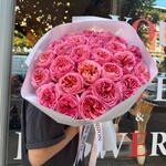 A lush, eye-catching composition of dusty pink and peach shades is the embodiment of exquisite luxury. The undisputed star of this gorgeous bouquet is the garden rose Pink Expression. Its exquisite complex shade and volume will not leave even the most sophisticated connoisseur indifferent. A bouquet of roses will suit a lady with exquisite taste who knows exactly what she wants. Add to favorite to not lose! HOW TO CARE OF FLOWERS? Do not remove the wrapping paper from the bouquet, so then flowers will live longer Change the cold water in a vase every day Keep the vase clean Cut the stem of each flower every two days Keep the bouquet out of a direct sun, drafts and heaters Add the flower food 2-3 days after you’ve bought your bouquet (We add the flower food to every bouquet)