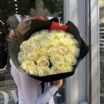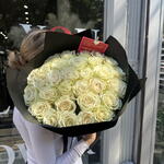 This hand-crafted bouquet features premium long stem white roses that will add elegance to any occasion. With its long-lasting blooms and delicate fragrance, this bouquet is perfect for weddings, anniversaries, or any special event. Elevate your floral arrangements with our Mono White Roses Bouquet. HOW TO CARE OF FLOWERS? Do not remove the wrapping paper from the bouquet, so then flowers will live longer Change the cold water in a vase every day Keep the vase clean Cut the stem of each flower every two days Keep the bouquet out of a direct sun, drafts and heaters Add the flower food 2-3 days after you’ve bought your bouquet (We add the flower food to every bouquet)