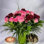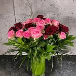 This vase bouquet is a mix of 24 pink and 24 red roses, making 48 roses in total. It’s great for special days like Birthdays or Mother’s Day. The roses are carefully chosen and displayed in a vase, making it a special way to show love, gratitude, or celebrate something. What’s inside: 24 Long stem pink roses 24 Long stem red roses A vase
