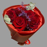 Limonium - 1 pcs eucalyptus - 2 pcs roses - 5 pcs decorative paper - 1 pcs