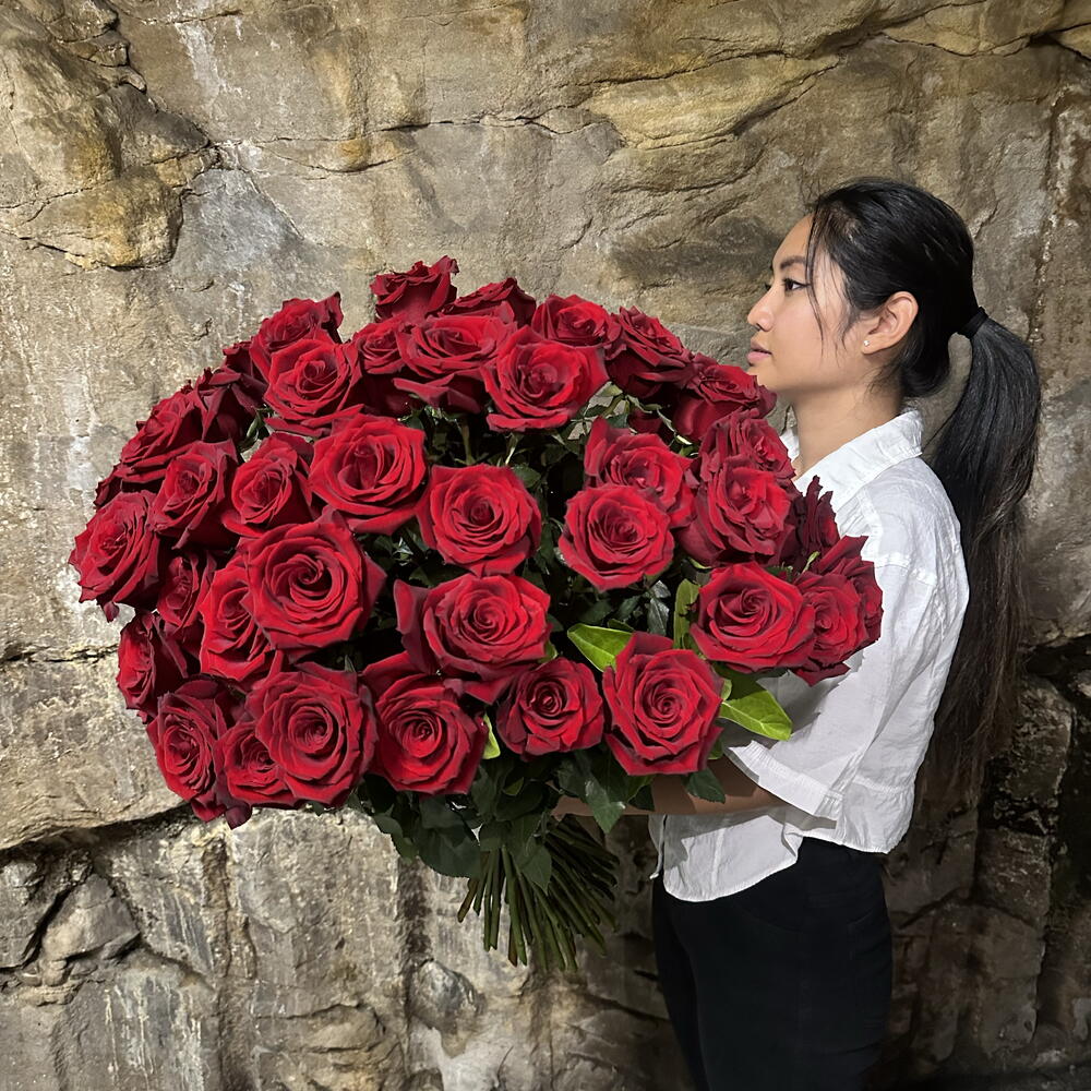 50 long stem premium red roses Flower care To ensure the longevity of your flowers, we have introduced some tips for your: Water change It is important to ensure no bacteria buildup occurs, please wash your vase with soapy water and change their water every 2 days Trimming flowers Using sharp, clean scissors, trim 2 cm off their stems on a 45 degree angle prior to placing them in their vase each water change, ensure you cut the stems Direct sunlight and heat Keep your flowers out of direct sunlight and heat, as they will mature quicker when exposed to light and heat