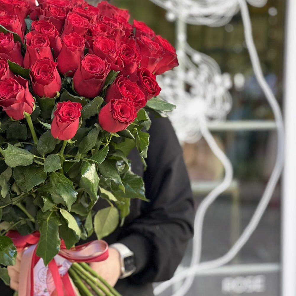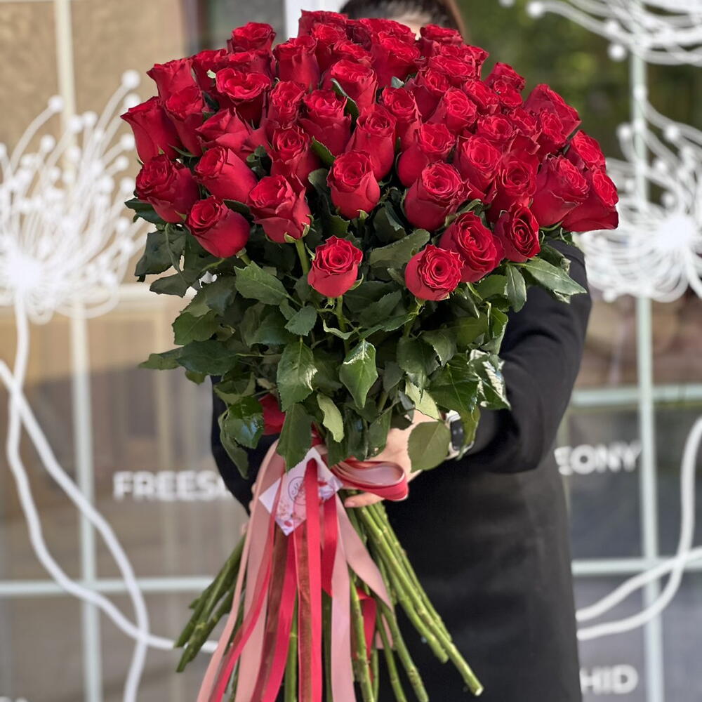 51 Голландская красная роза 70-80 см